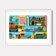 Celebrating the Kiwi summer in all its glory. With iconic NZ elements inspired by road trips around the country during the Christmas holidays. Bright, colourful and very New Zealand.