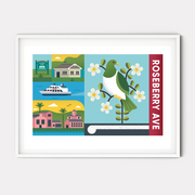 Standard print features road name 'Birkenhead Ave' but we offer free road name customisations so that you can feature your own road or place name.