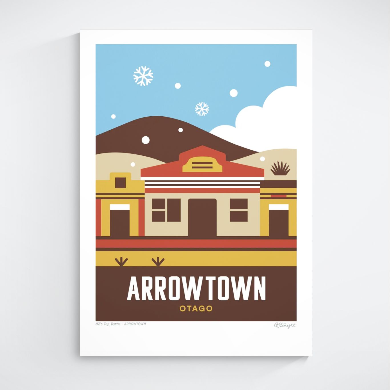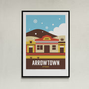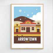 This Arrowtown art print captures the magic of this historic goldmining town. Featuring the iconic shopfronts set against rolling hills in a winter scene with muted tones, this artwork highlights Arrowtown’s timeless beauty and alpine setting.