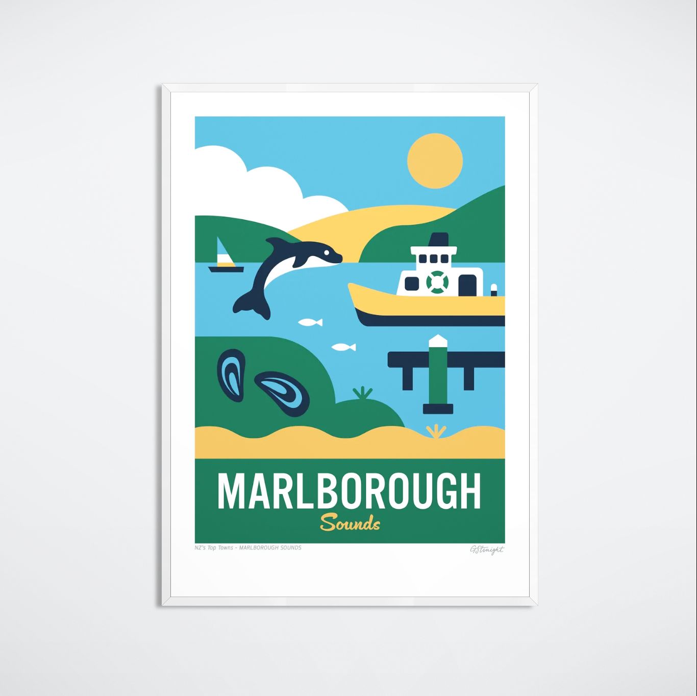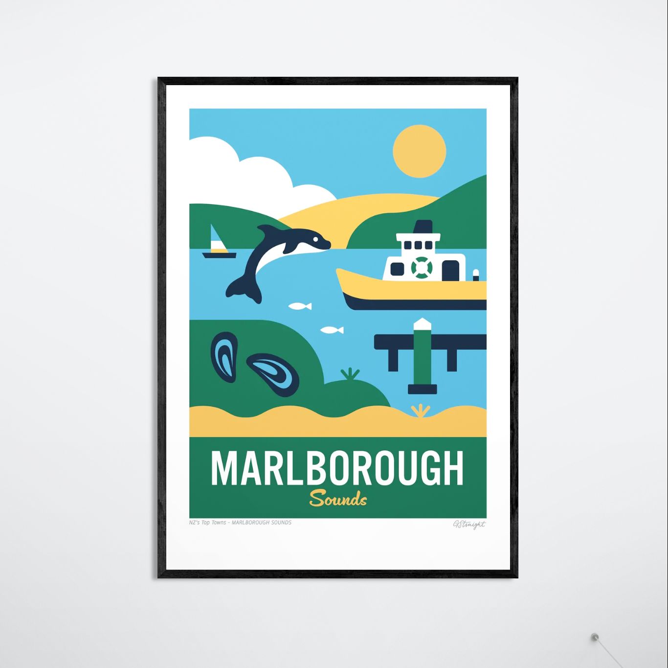 Part of Greg’s NZ’s Top Towns series, this piece is a tribute to Marlborough’s natural beauty and seafood culture. A must-have for anyone who loves this stunning region and delicious seafood and wine.