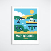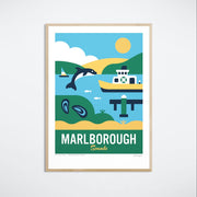 This Marlborough Sounds art print brings to life New Zealand’s coastal paradise. Featuring a harbour scene with a nod to the region’s famous mussels capturing the spirit of the Sounds.