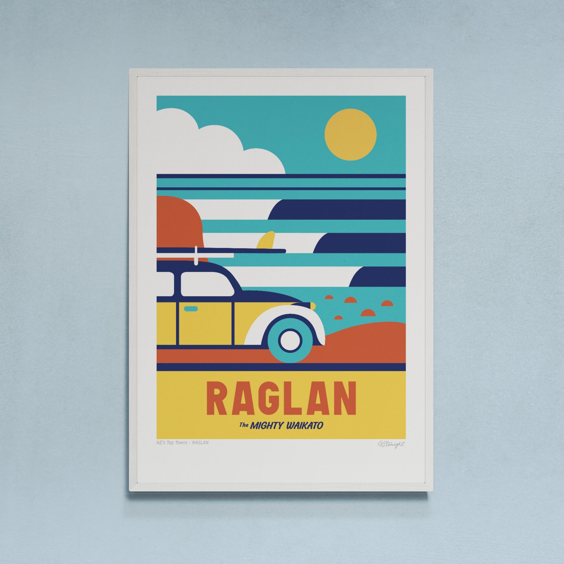 Part of Greg’s NZ’s Top Towns series, this piece offers a dynamic tribute to Raglan’s waves and charm.