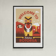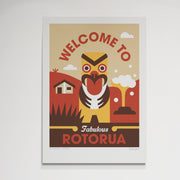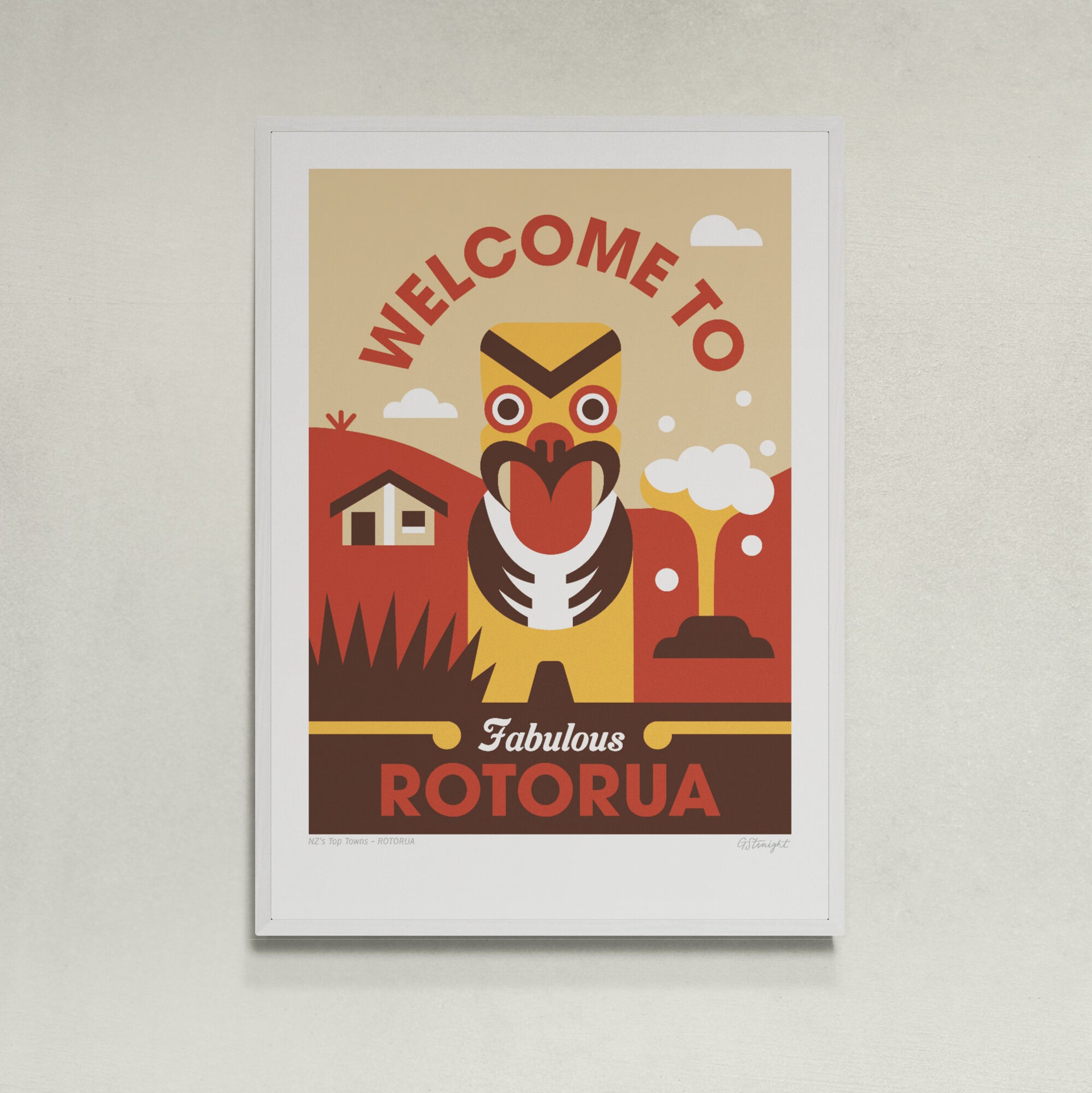 This Rotorua art print captures the cultural heart and natural wonders of Aotearoa. Featuring a striking tiki motif, a traditional meeting house and the swirling energy of geothermal geysers, bringing together the city’s rich Māori heritage and unique landscapes.