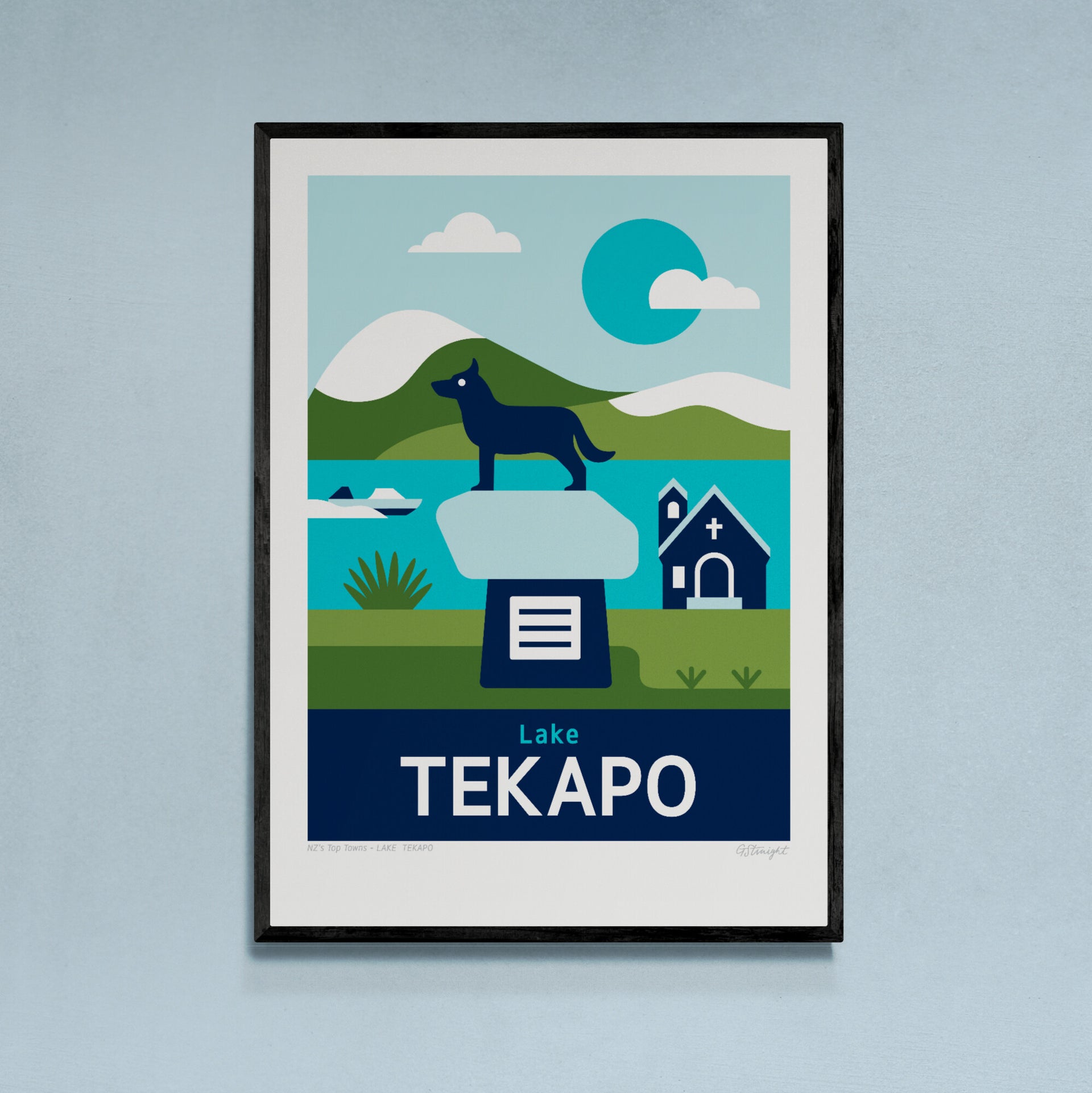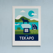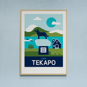 This Tekapo art print captures the stunning alpine landscape. Featuring the famous sheepdog memorial, the iconic church of the good shepherd, bright aqua lake and snow capped mountains, bringing Tekapo’s breathtaking scenery to life.