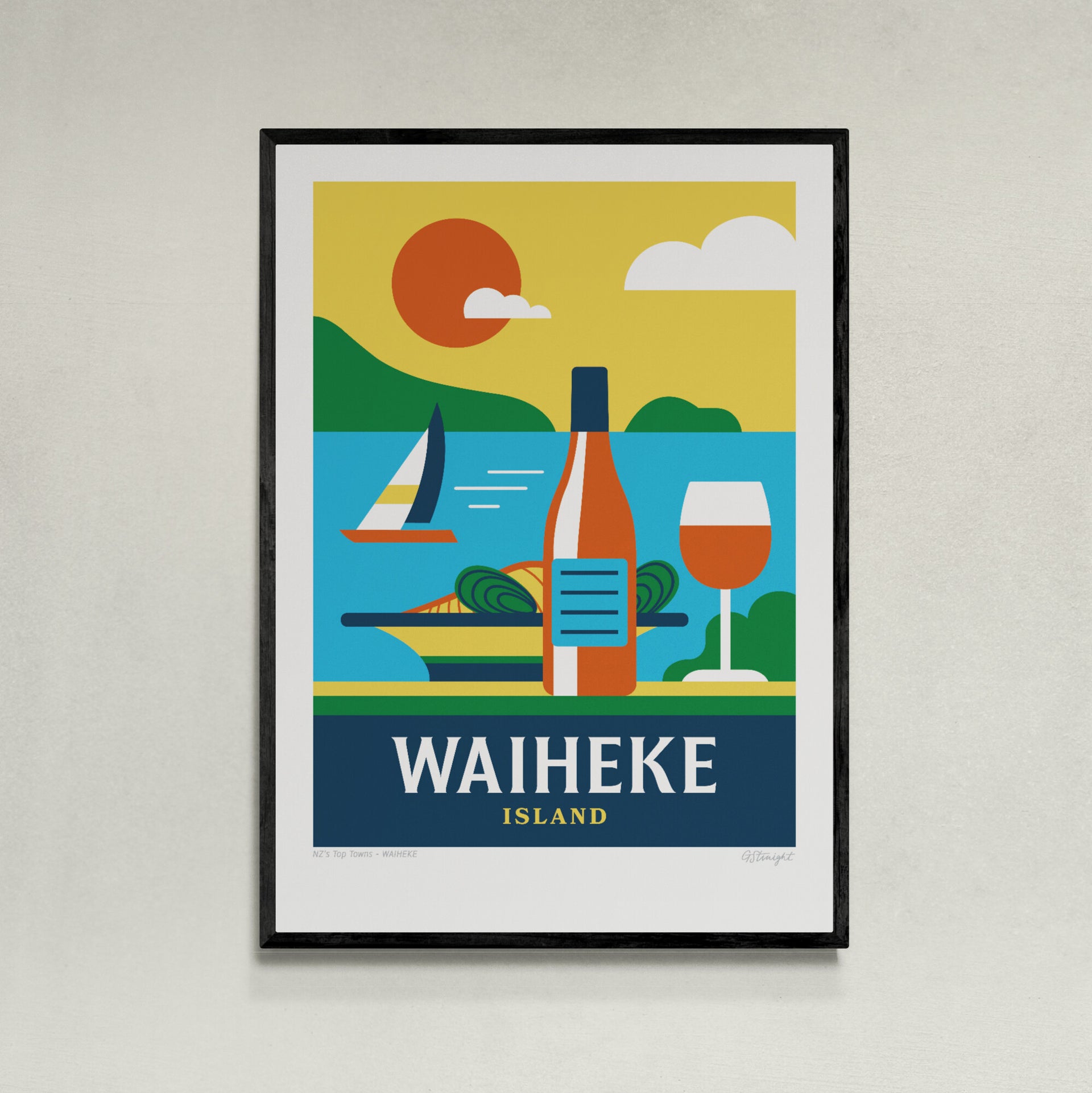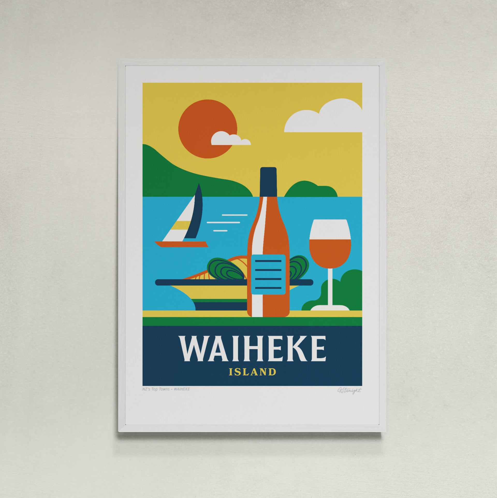 Part of Greg’s NZ’s Top Towns series, this piece offers a dynamic tribute to Waiheke’s blend of food, wine, and island charm. A must-have for anyone who loves this iconic getaway.