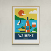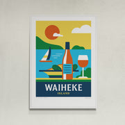 This Waiheke art print captures the island’s relaxed sophistication, featuring the sparkling Hauraki Gulf, fine dining and the Fuller’s ferry crossing the water. It’s a perfect reflection of the island’s vibrant lifestyle and coastal beauty.