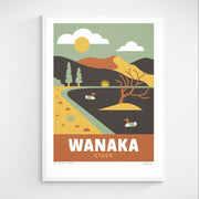 This Wānaka art print captures the serenity of the lakeside town, featuring the iconic tree rising from the lake and the dramatic mountain backdrop that defines the region. It’s a perfect snapshot of Wānaka’s natural magic.