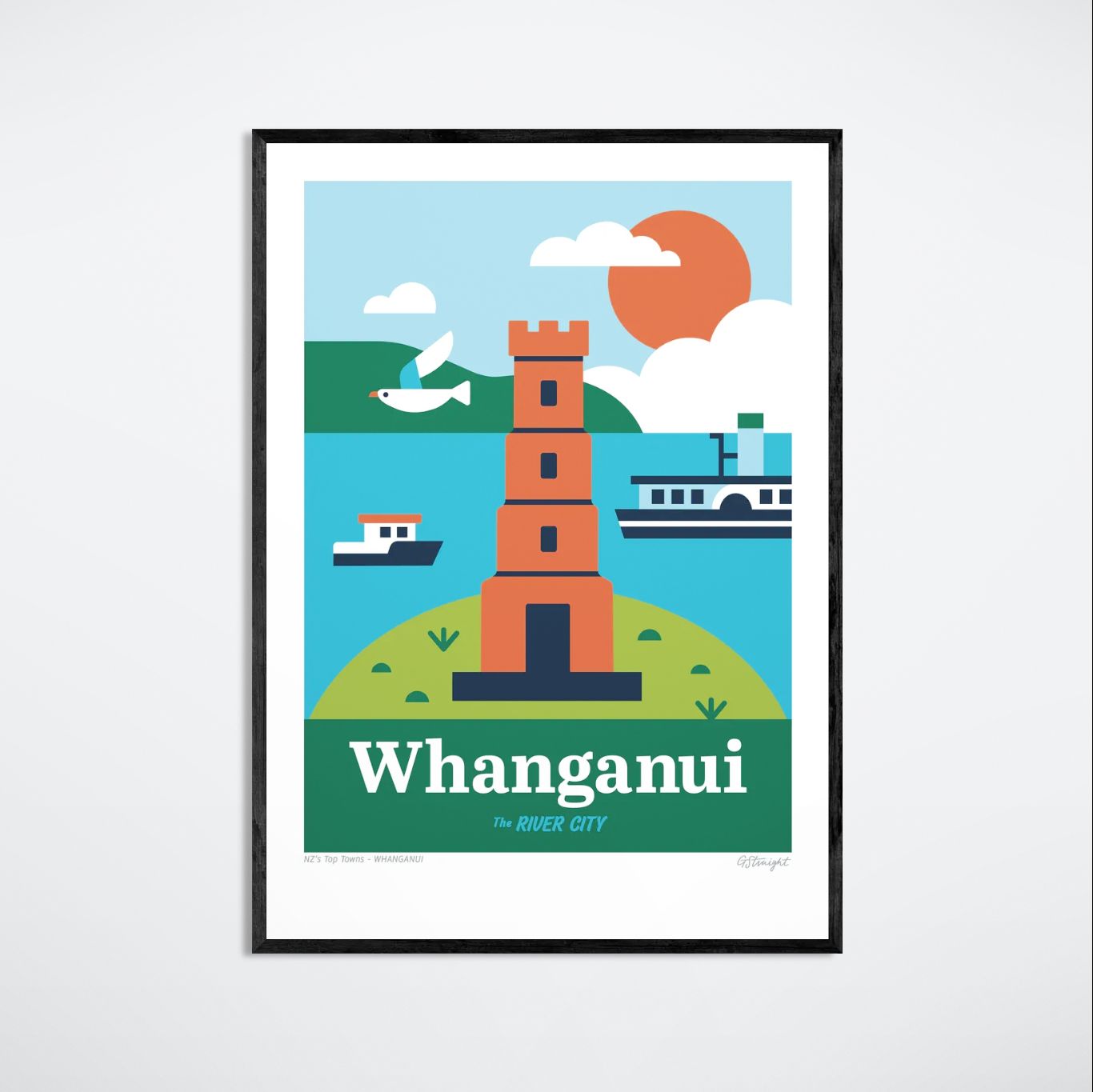 This Whanganui art print captures the character of this historic town. Featuring the mighty Whanganui River and the striking War Memorial Tower, this artwork reflects the city’s proud heritage and riverside charm.