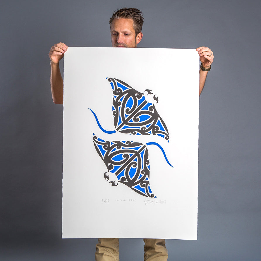 Screen printed onto 100cm x 70cm full sheet of 350gsm incisioni white paper.