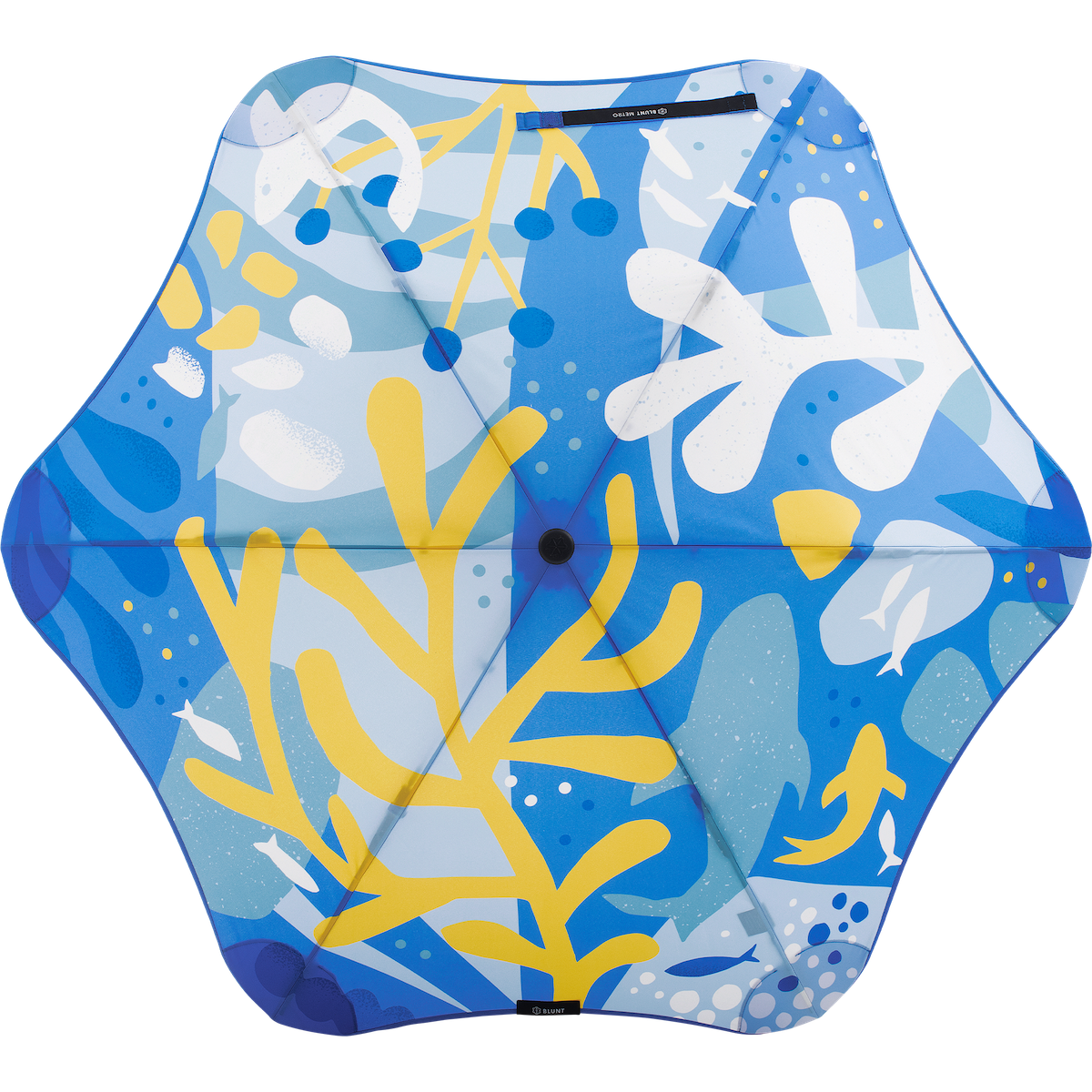 For his BLUNT umbrella, Greg created a hand-sketched piece of art inspired by his love of the sea, surfing and nature. His design features flowing shapes moving gently with the tide. A nod to the nostalgic feeling of summer days spent by the sea.