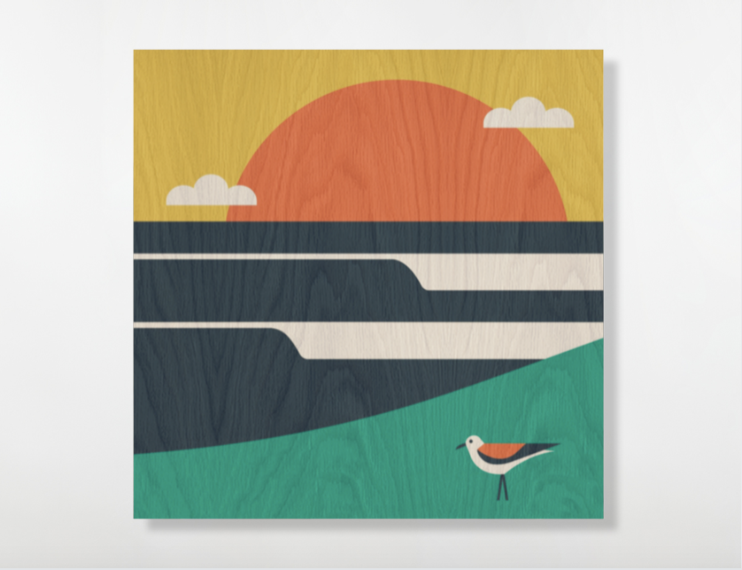 Artwork printed directly onto 9mm thick plywood. The natural wood grain shows through to create a unique art piece.